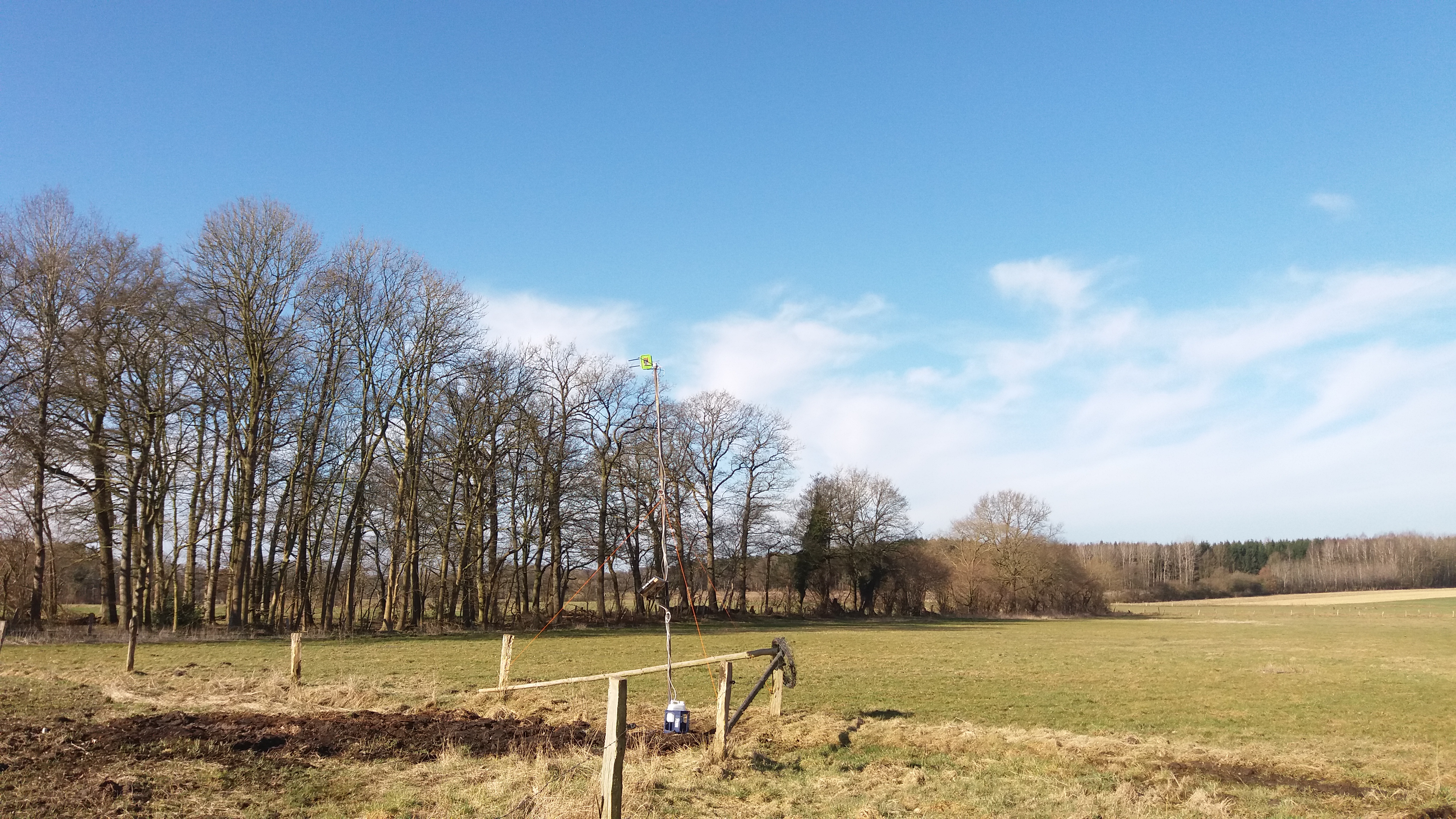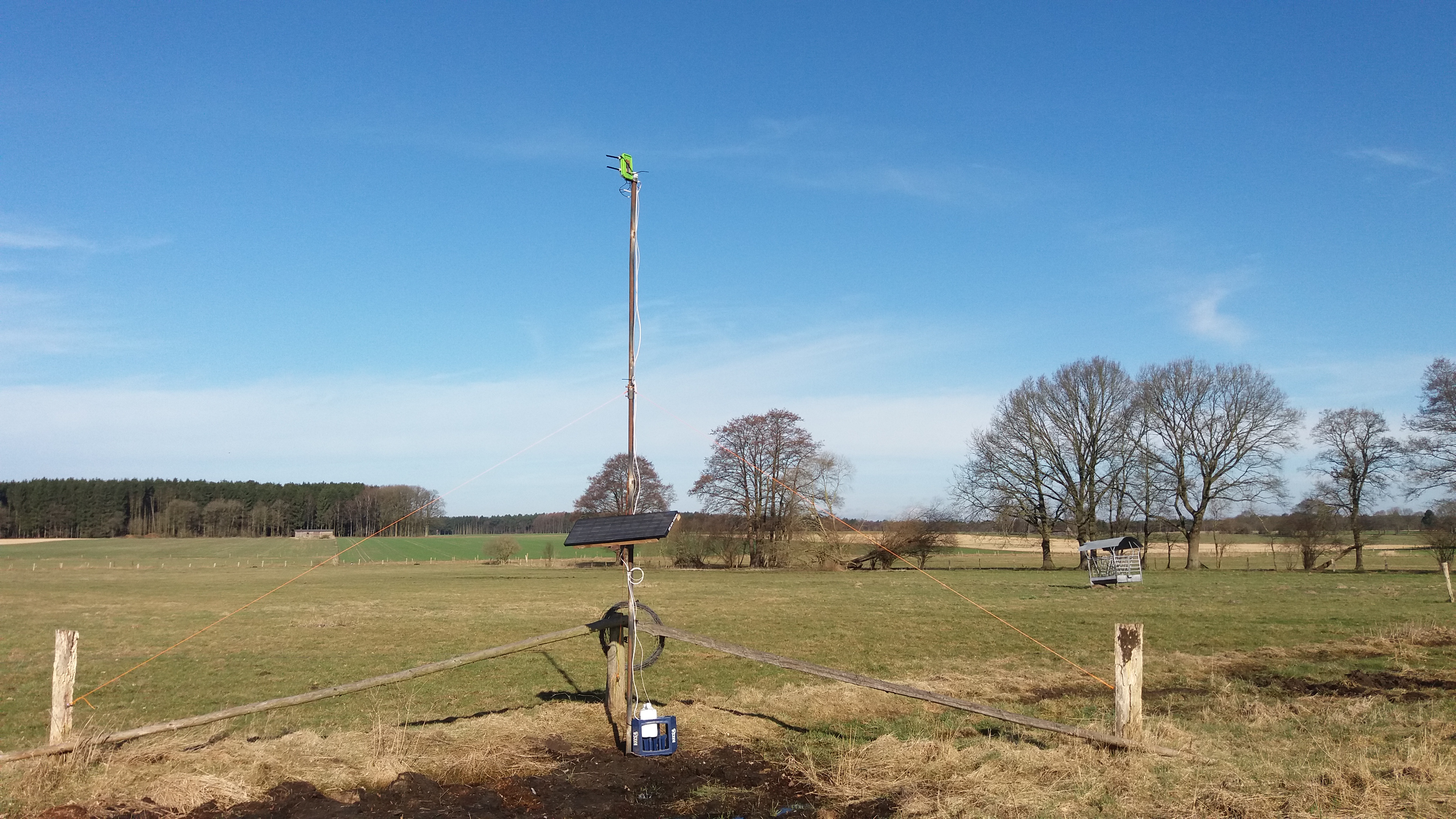 zum anderen wird sich der Mast im Winkel eines Weidezauns befinden, sodass an diesem drei Seile zum Abspannen befestigt werden.