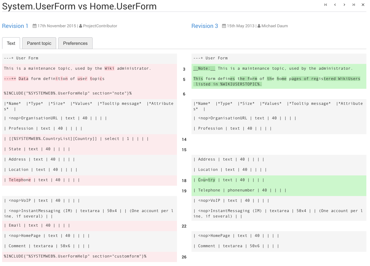 $olddate: date when $oldauthor edited revision oldrev of oldtopic